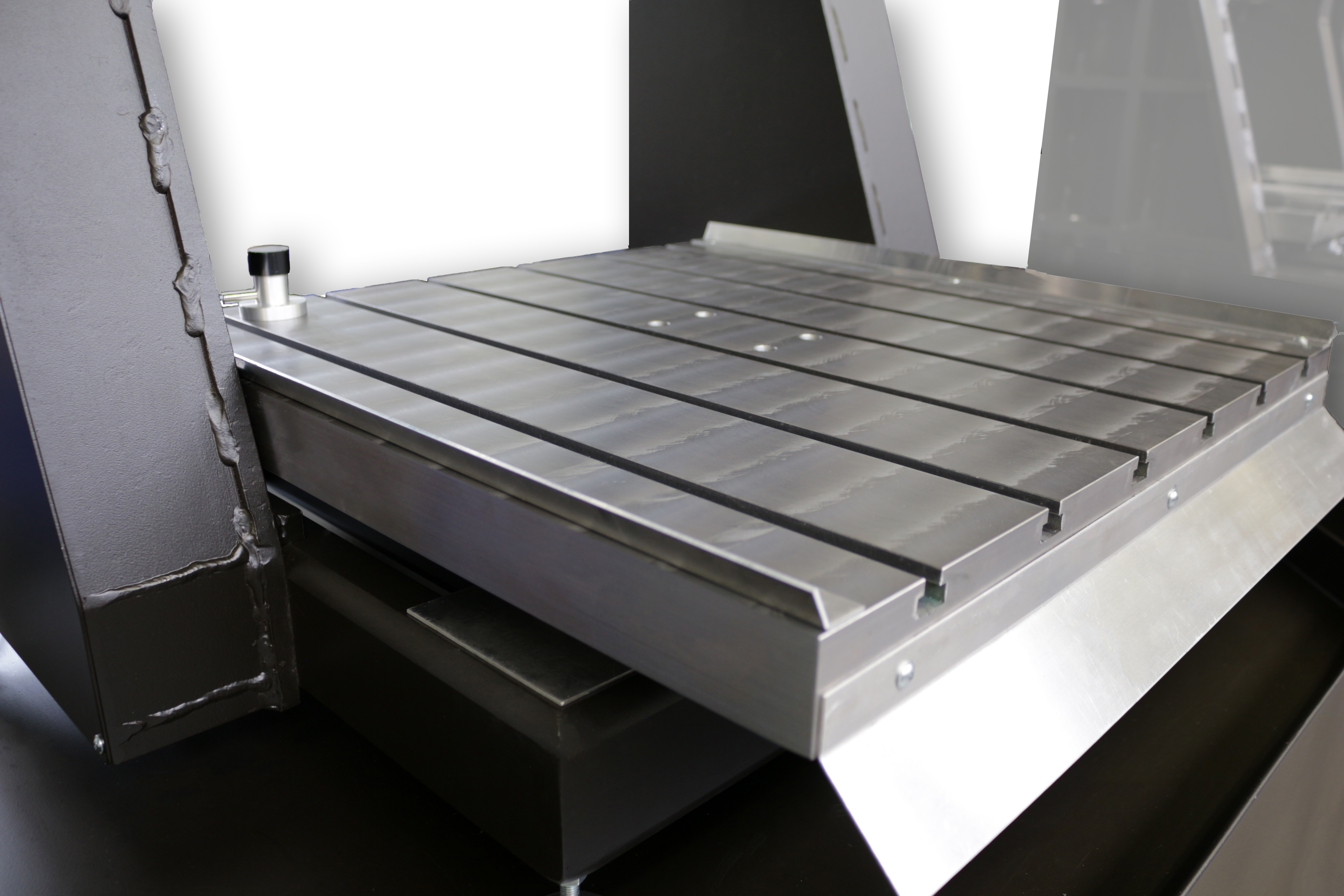Der T- Nutentisch wurde ebenfalls deutlich verstärkt und besteht nun aus einer 50mm dicken Stahlplatte.